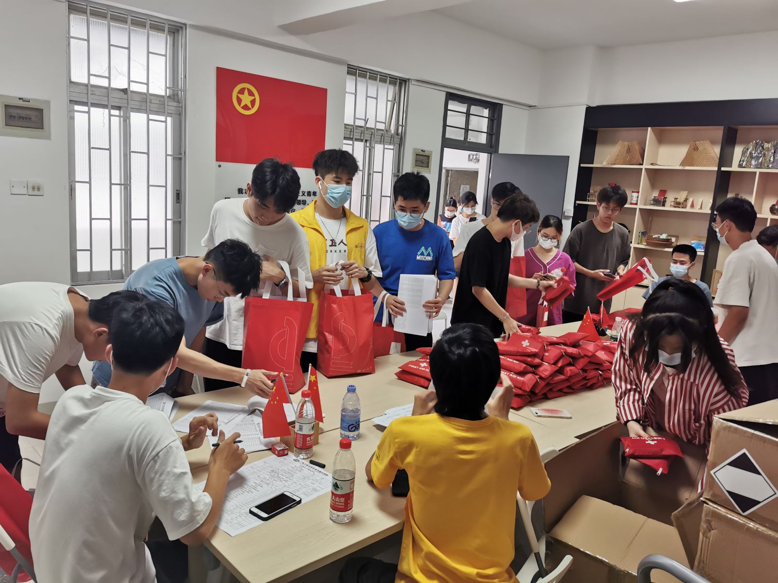 迎新使者为新生领取防疫礼包