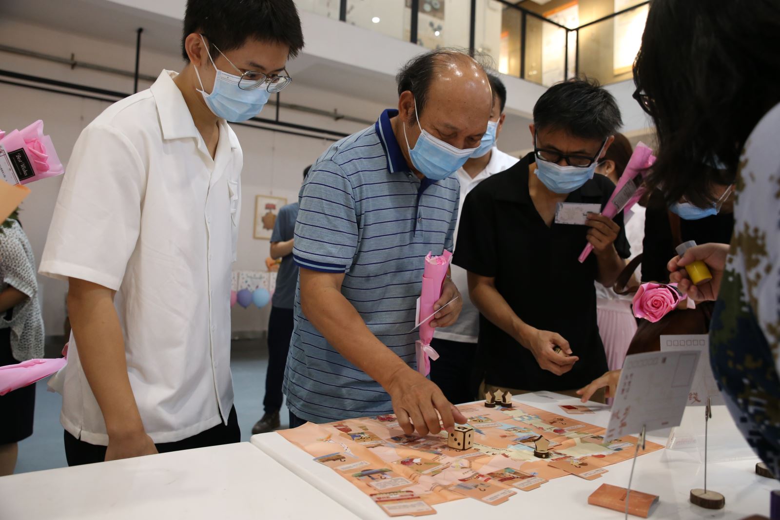 活动当天,教师们纷纷加入党史学习体验互动环节,现场气氛热烈。活动设置 “花”点心思——“党史知识问答”卡片答题、“游”点心思——《百年党史游记》掷骰子游戏答题、“扫”点心思——H5作品《百年党史时空穿梭隧道》、《木棉花开·庆党百年》扫码互动答题等环节,其中,《百年党史游记》、《百年党史时空穿梭隧道》、《木棉花开·庆党百年》均是由学院党委牵头,专业老师指导学生创作的设计作品。学院发挥专业特色,通过创新党史学习载体形式,让党史学习更有生气、聚人气、接地气,提振了党史学习教育效果,推进党史学习教育走深走实、入脑入心。