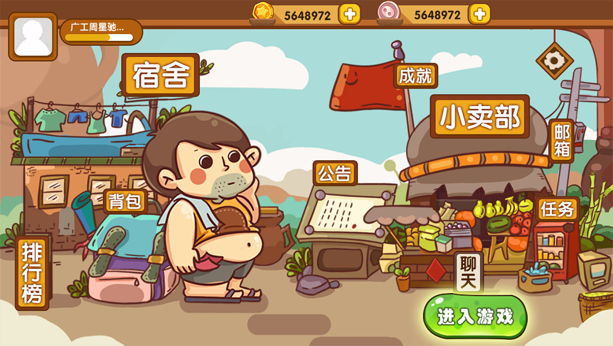 考虑以游戏的形式,告诉当代宅大学生这种生活状态的后果,自己如何“自救”,判断“宅”给我们带来的利与弊,认真把握好“宅”的度,利用有趣的游戏方式让玩家有深刻的体会。因而决定了游戏的风格是偏趣味性的,Q版、扁平、活泼为主要关键词语。