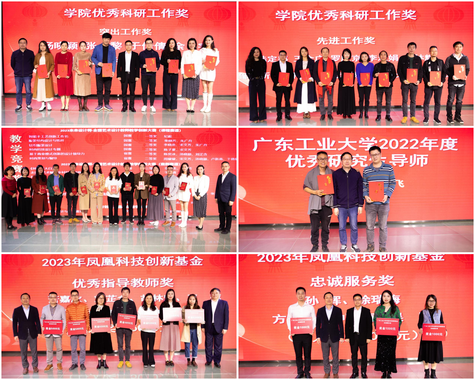 会议对第十一届“省长杯”工业设计大赛和广东省工业设计展览馆突出贡献个人进行表彰。学院领导班子为“学院优秀科研工作奖”、“教学竞赛奖”、“学校优秀研究生导师奖”、“凤凰科技创新基金优秀指导教师奖、忠诚服务奖”的获奖教师颁奖,以弘扬师德典范,彰显榜样力量。